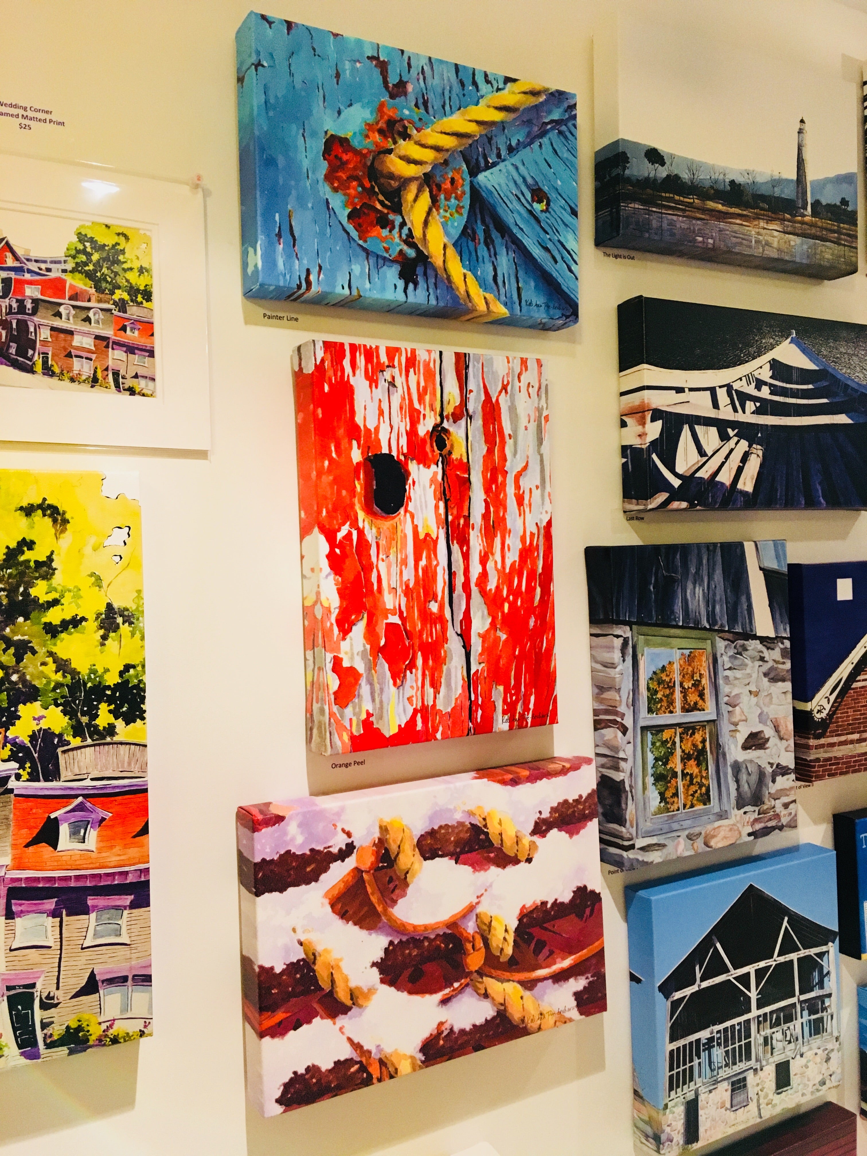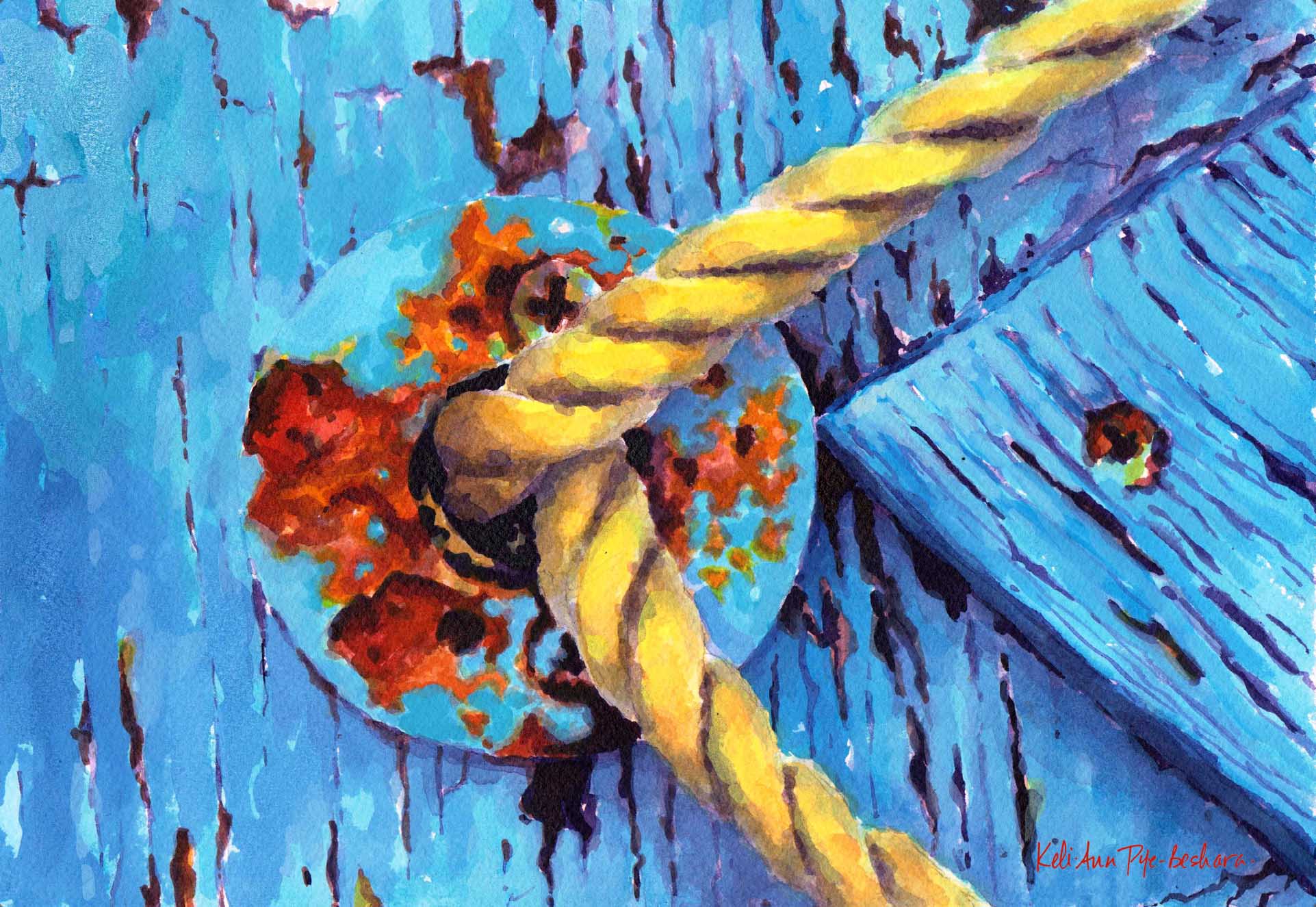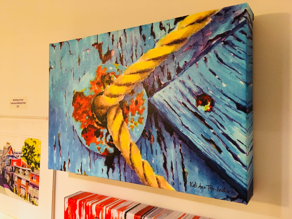 Art prints from the original acrylic inks on paper painting. Part of a triptych (3 panel painting) with Orange Peel and Lobster Brisque. The colour and composition are what attracted me to this image. There is a lot of Newfoundland history in such a small amount of detail. This boat sat at the edge of a driveway in Chapel's Cove for years before I painted it. It is gone now.